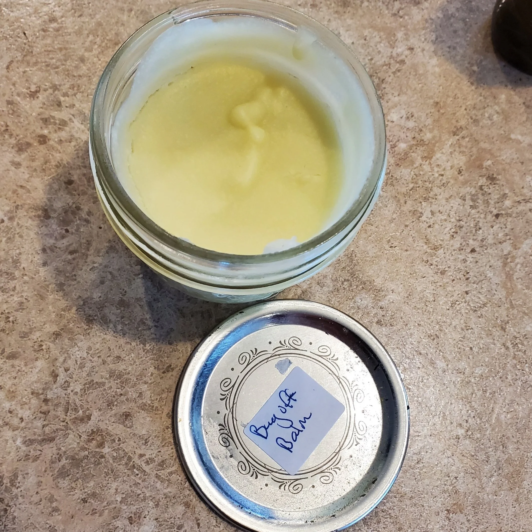 1 part or about 1/4 cup of olive oil infused with comfrey, bergamot, yarrow and arnica