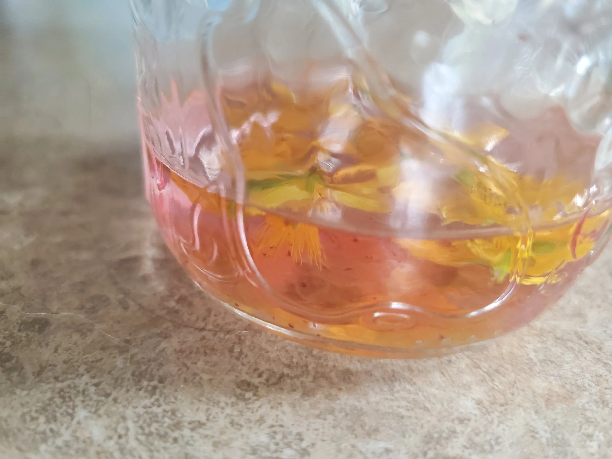Tinctures are made by using a solvent to extract some of the healing properties of the plant into a liquid base. Liquids used are often high-proof alcohol (80 proof or higher/ 40% alcohol or higher), or water-based liquids such as witch hazel, vinegar or glycerine. These can be used for internal consumption or topical application. Alcohol tinctures will last almost indefinitely as alcohol is an excellent preservative. Water-based products will have a much shorter self life so you’ll want to make them in smaller batches or find other ways to preserve them such as freezing. (see my witch hazel calendula tincture for healing sunburns)