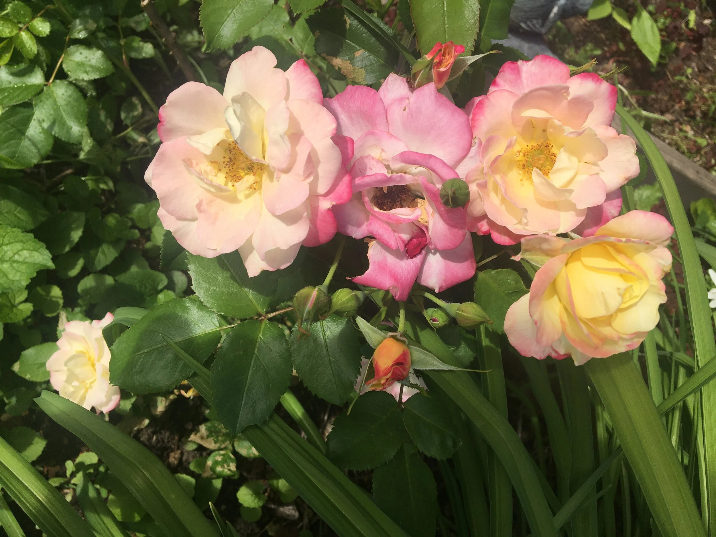 Morden Sunrise roses from my previous garden. Any rose will do but I find the old fashioned roses have the strongest scent.